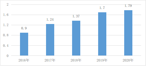 圖6 2016年至2020年我國農村網絡零售額(萬億元)