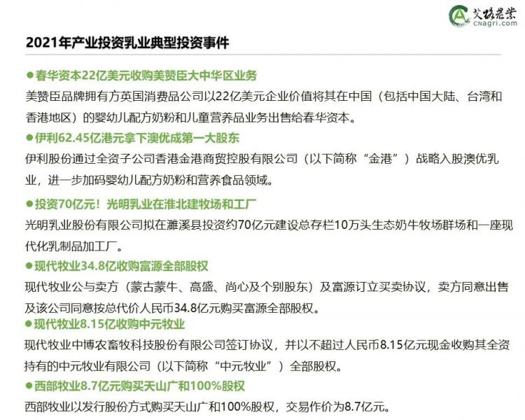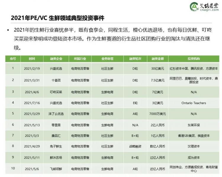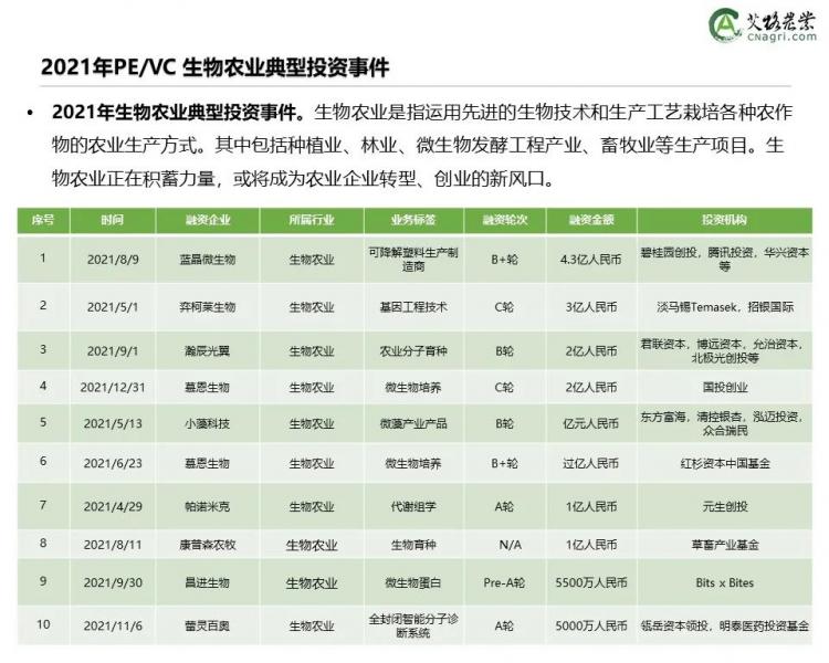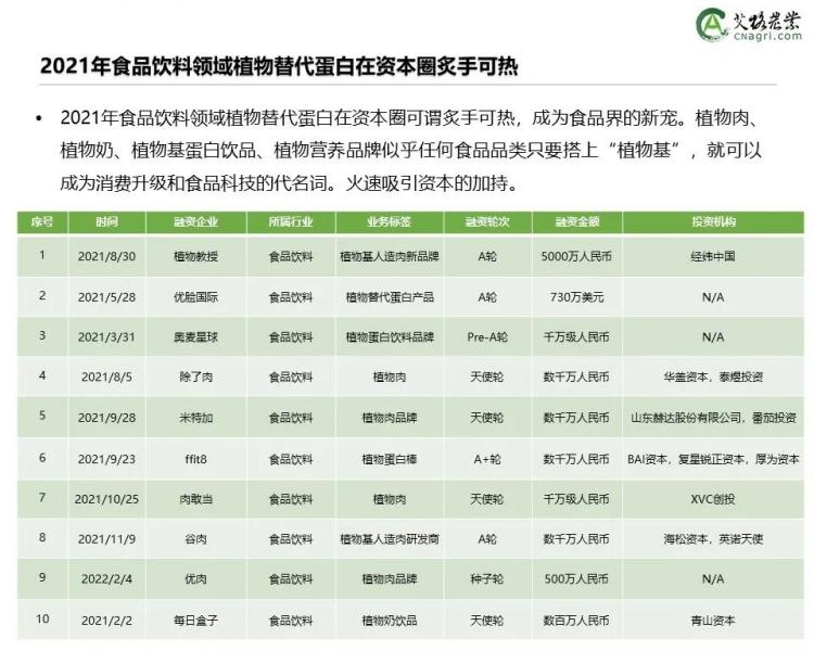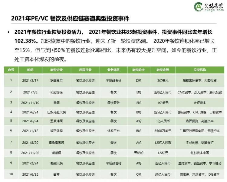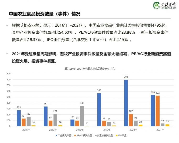 近日,《2021年中國農業食品投資年報》重磅出爐,年報顯示: