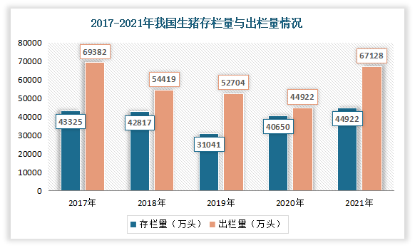 2018-2020年,在非洲豬瘟等因素的影響之下,我國生豬出欄量和豬肉產量明顯下跌。2021年隨著豬瘟的減弱以及國家政策的支持,我國生豬存欄量、出欄量以及豬肉產量已經基本恢復到了豬瘟之前水平。