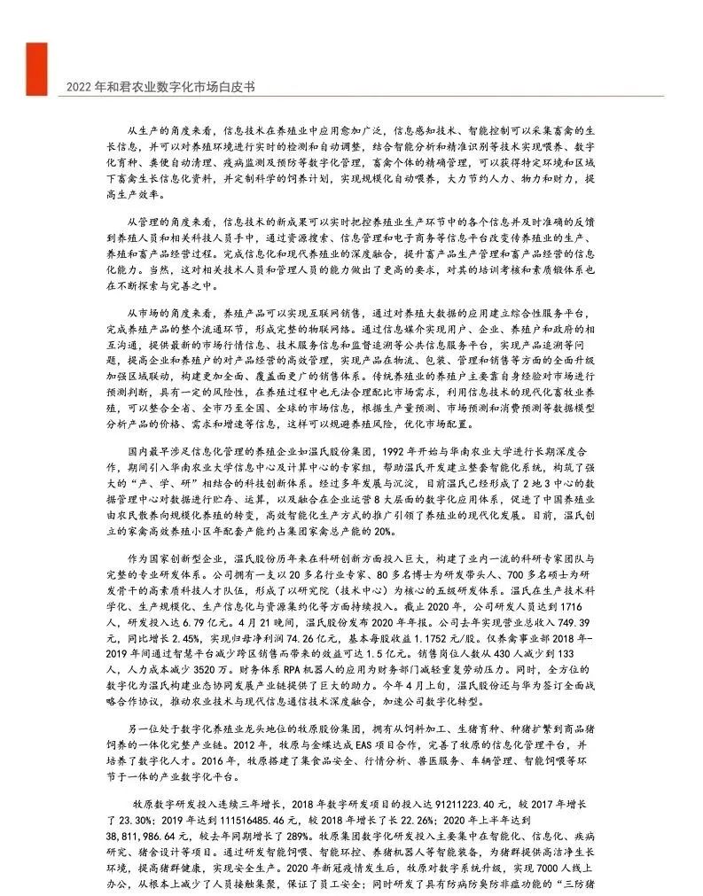 而在當前新冠疫情影響的大背景下,數字技術對于我國種植業保耕作促生產重要性尤其凸顯。加大種植業數字化研發、支持種植業數字化集成應用轉化、加強種植業數字化技術推廣和培訓符合我國農業支持政策的轉型方向,也是提高我國農業基礎競爭力的重要途徑。但從農業整體發展來看,我國農業在各大主要行業中的數字化建設仍處于最低水平。據中國信息通信研究院的2020年發布的數據,我國農業數字經濟僅占行業增加值比重僅為8.2%,遠低于工業19.5%、服務業37.8%的水平。農業領域的數字化建設不足,尤其體現在種植業生產方面數字化技術的發展不足,我國種植業生產仍以傳統方式為主,農業產業小散弱的特點明顯,仍處于數字化的初級階段。