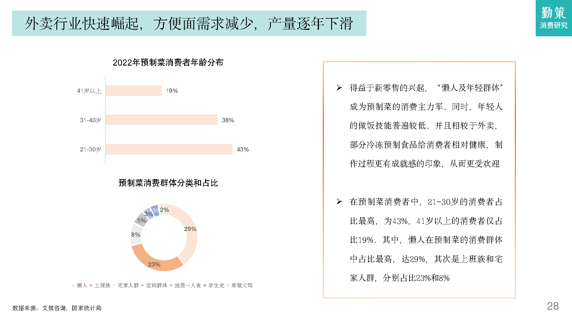 隨著外賣行業(yè)的快速崛起,方便面需求逐漸減少,產(chǎn)量也在逐年下滑。外賣行業(yè)的興起給了消費(fèi)者更多選擇,而方便面在方便快捷程度上與預(yù)制菜存在一定的競爭關(guān)系。