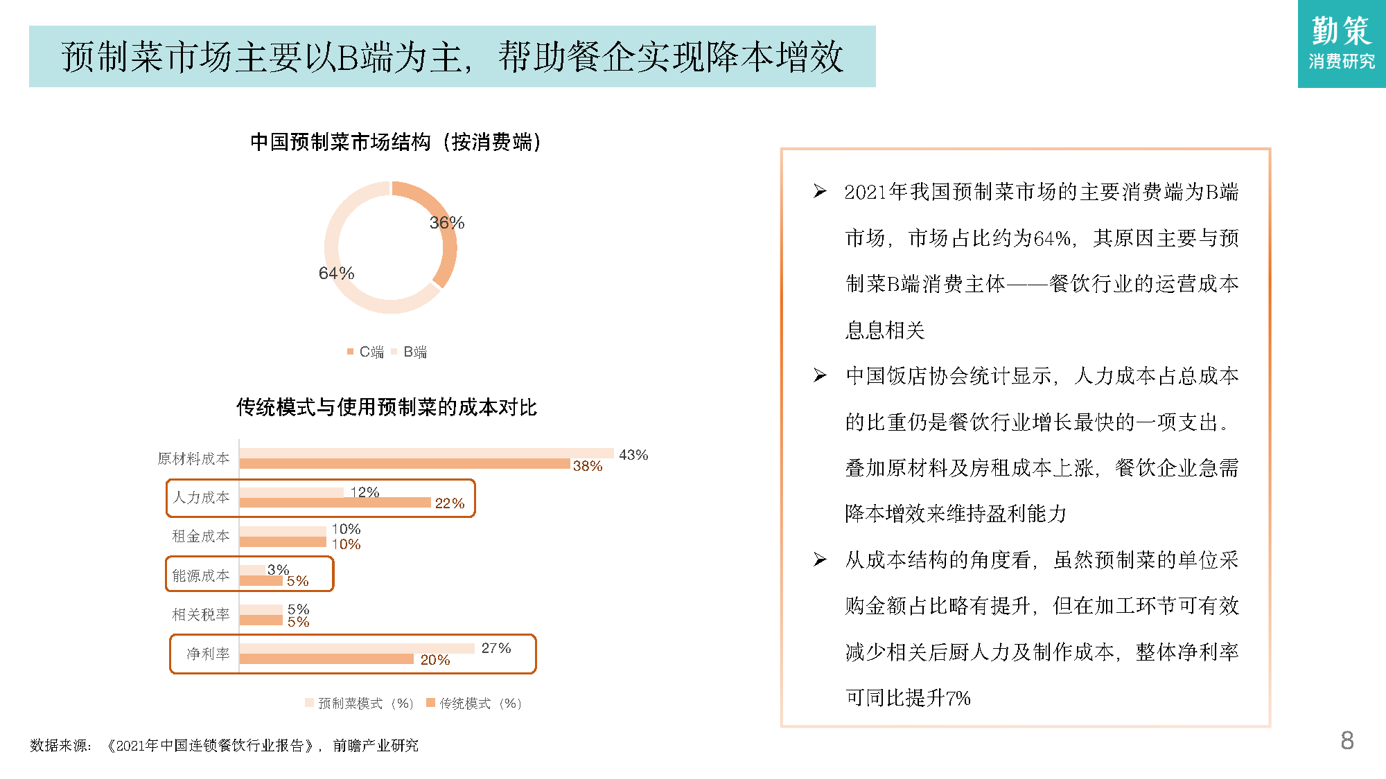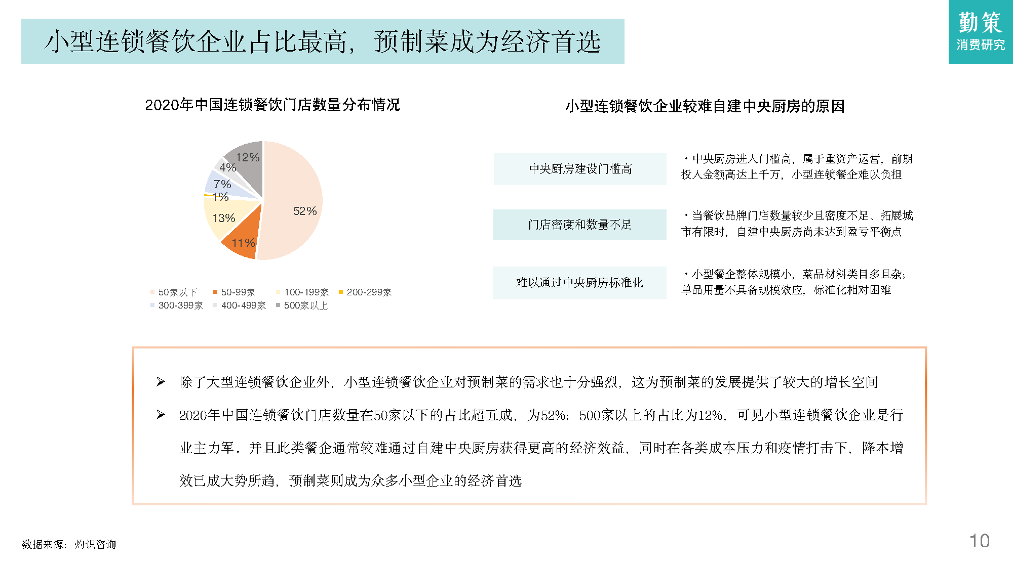 報(bào)告顯示,由于小型連鎖餐飲企業(yè)在市場上的占比不斷提高,預(yù)制菜成為了經(jīng)濟(jì)實(shí)惠的首選。這些企業(yè)通過采購預(yù)制菜降低成本,提高效率,進(jìn)一步擴(kuò)大了預(yù)制菜的市場規(guī)模。