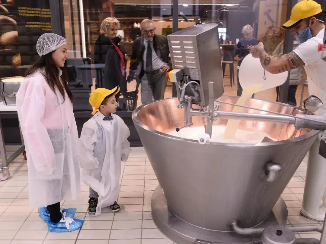 在這里可以親眼看到意大利傳統美食火腿和香腸的制作過程,可以看到小麥如何磨制成面粉做出各種面食,牛奶如何制作成奶酪,蔬菜水果如何制成各種果醬和飲料,以及紅酒與橄欖油的生產流程。