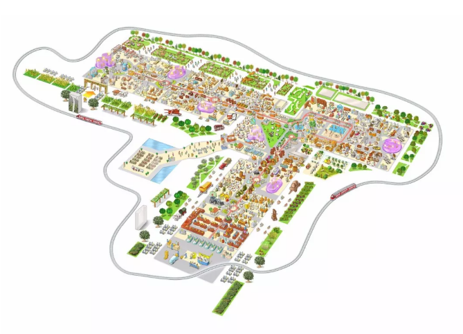 每個食品組團內均設置了數條通道與農場連接,供顧客進入農場內進行參觀,再返回主軸線繼續消費。在經過各個廣場節點時,顧客可以在休閑娛樂設施和科普、培訓點停留。廣場上既包含體育、游樂等娛樂設施,也有趣味性的農業體驗。