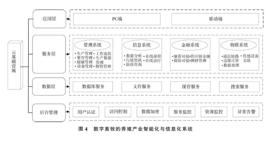 數字畜牧通過綜合運用物聯網技術、大數據平臺及人工智能技術,優化畜牧業養殖、防疫、檢疫、產品安全監測、病死動物處理、屠宰管理、衛生監督和市場監測等環節,以實現畜禽養殖智能化、動物防疫和檢疫智能化、畜產品安全監測智能化。具體而言,基于物聯網技術,實現畜禽標準化養殖、環境因素的智能檢測與調控、全程電子溯源;建設大數據平臺實現養殖戶即時獲取畜禽的生長特性、飼養管理要點、疫病防治知識以及市場行情動態,進一步優化養殖決策過程;通過人工智能技術,實現畜禽個體位置及生理特性指標的獲取、病死動物無害化處理和動物衛生監督執法的智能化,實現從畜禽養殖到屠宰、流通每個環節的質量安全追溯,整體提升畜牧業防疫和安全監管的效率和精確度。