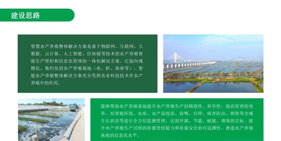 本方案全面介紹了智慧水產養殖的背景、市場分析、現狀以及建設思路。該方案指出,隨著水產養殖規模的擴大,傳統的手工、非實時的信息記錄方式已無法滿足現代化生產和管理需求,智慧水產養殖應運而生。