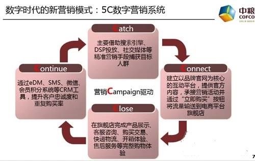 目前中糧電商在統一線上線下會員體系方面已經形成了獨有的營銷體系,并建立了“5C”營銷模型,深挖會員需求,并打通閉環,通過對會員系統、積分系統持續升級等手段提升重復購買和用戶忠誠度(Continue)。