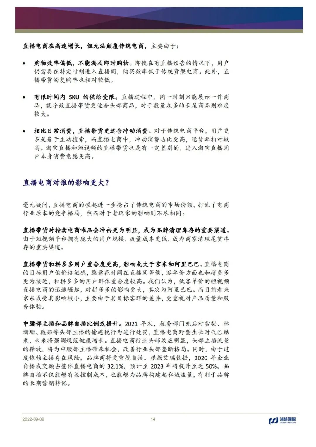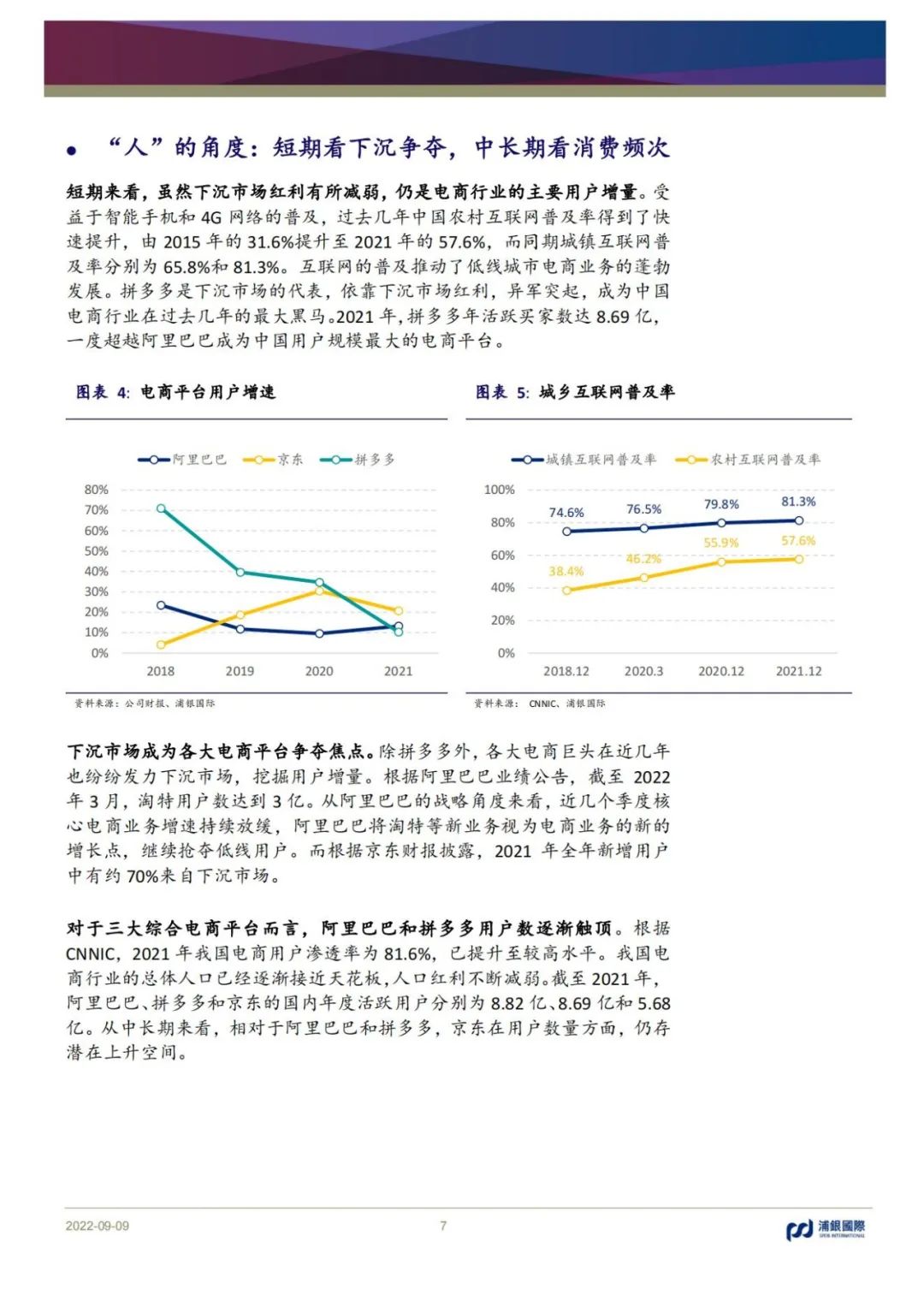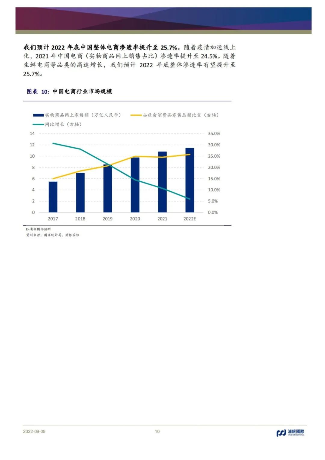拼多多演繹“農(nóng)村包圍城市”,品牌上行初見成效,增速領(lǐng)先,利潤釋放;京東相對穩(wěn)健,供應(yīng)鏈護城河優(yōu)勢明顯,結(jié)構(gòu)優(yōu)化或助推利潤率改善;匯通達依靠交易+服務(wù)雙輪驅(qū)動,關(guān)注毛利率改善機會;唯品會的特賣模式受直播帶貨沖擊明顯,短期增長乏力;電商代運營增速放緩,短期承壓。