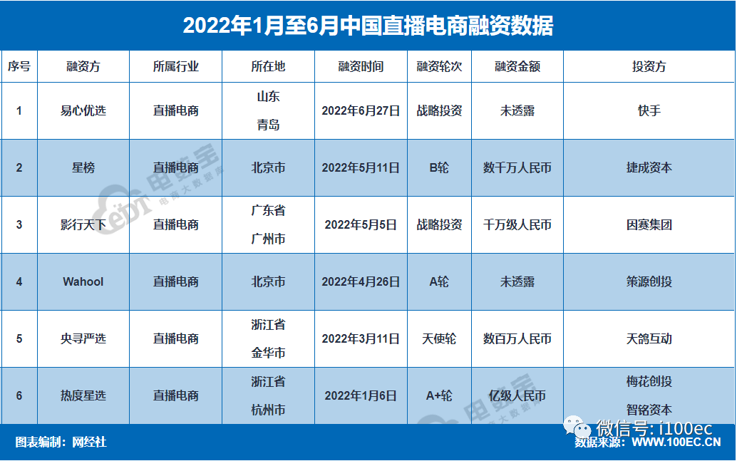 上半年直播電商融資6起 總金額超1.3億元