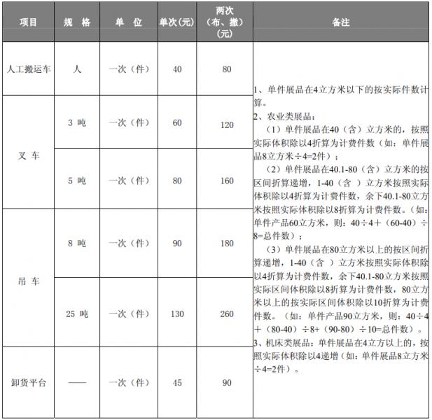 3、為保障現(xiàn)場裝卸安全有序管理物流秩序,請(qǐng)使用大會(huì)指定主場物流服務(wù)商提供的裝卸服務(wù)工具。禁止外帶未經(jīng)主場物流服務(wù)商備案的裝卸工具。
