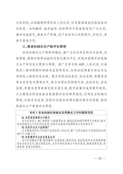 《規劃》顯示,綜合運用北斗、5G、物聯網、大數據等技術,推進農機物聯網管理平臺建設,提升農業機械化生產狀況動態監測、農機作業指揮遠程調度和應急處理水平。大力推進農用北斗終端產品在農機上的應用,推廣應用加裝北斗終端的農業機械不少于50萬臺。
