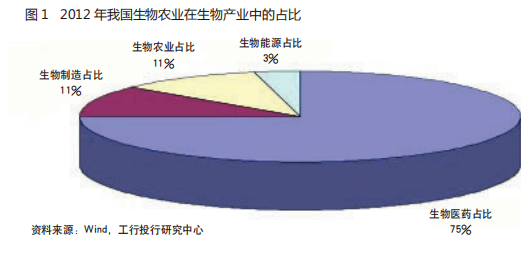 相關報告顯示,生物農業在國內外都屬于新興領域,我國生物農業的發展受到關鍵技術瓶頸、政策未放開等因素的制約,在技術研發和應用推廣方面落后于歐美發達國家,但較發展中國家已經小有成就。經過近幾十年的發展,我國的生物農業產業已經初具規模,2012年國內生物農業總產值達到2547億元,在生物產業中的比重達到11%,國內已經涌現出了一批生物農業企業,若干生物農業領域的技術研發已經達到了世界先進水平,未來若能在關鍵技術領域獲得突破,我國的生物農業產業將大有發展。