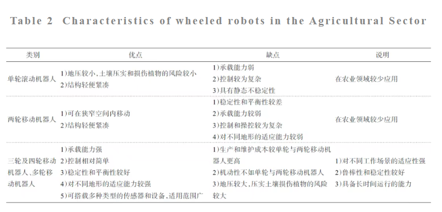 Table 2 Characteristics of wheeled robots in the Agricultural Sector