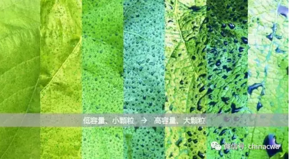 ▲藥液噴灑到作物葉片表面后的附著效果圖