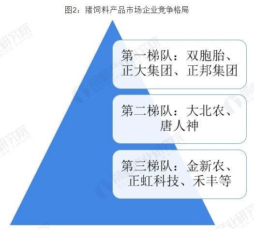 從豬飼料產品市場企業競爭格局來看,按照銷售量和營業收入,總體上可以劃分為三個梯隊:其中第一梯隊的代表企業是雙胞胎集團、正大集團以及正邦集團,銷售量超過600萬噸,營業收入超過300億元;居于第二梯隊的主要有唐人神、禾豐以及大北農,這幾家企業銷售量在200萬噸以上,營業收入超過100億元;第三梯隊的代表企業主要有正虹科技以及金新農等。
