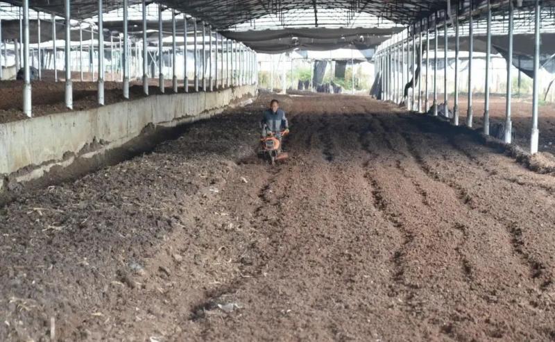 在養殖基地內,放著一堆堆秸桿和樹枝、枯草,工人操作下的機器發出轟鳴聲。羅景楊告訴紅星新聞,這些秸桿和樹枝被加工后,混合一些人蓄糞便、生活污泥、泥土等發酵,堆成養殖床用于蚯蚓養殖。