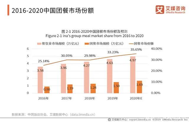據艾媒咨詢數據,2019年中國團餐市場規模高達1.5萬億元,已占據餐飲行業30%的市場份額,人均年團餐消費額在1300-1500元,全國團餐受眾群體約為6.7億人。團餐被餐飲行業譽為“最后一片藍海”。