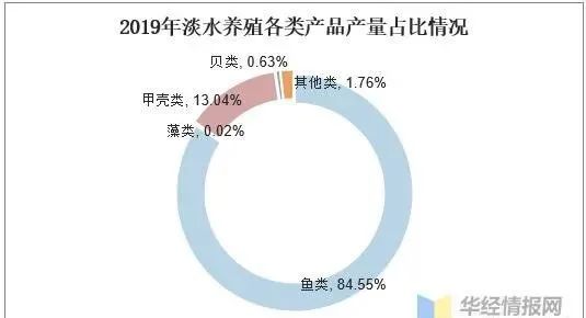 在中國淡水養殖的產品中以魚類和甲殼類為主,而藻類、貝類和其他產品養殖的都比較少。魚類是我國淡水養殖最多的生物,主要是由于我國內陸廣闊,海洋魚類運輸成本高,在內陸地區價格較高,其次淡水魚養殖成本低,養殖較為便利。而淡水養殖的甲殼類產品,以小龍蝦和淡水蟹為主。