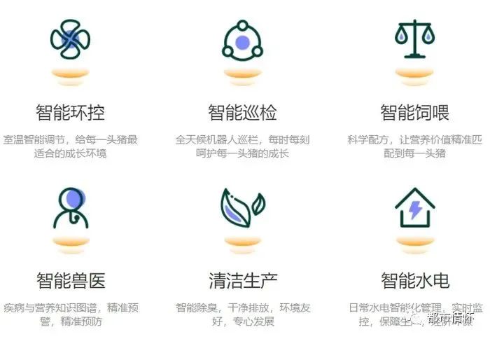 近年來,公司大力發展智能化飼喂系統和云服務平臺等信息智能化系統,加快物聯網、區塊鏈、人工智能、5G等現代信息技術運用,以信息化帶動農業現代化。公司自主研發的智能裝備覆蓋了生豬的飼料、智慧養殖和屠宰、無害化等全流程業務,公司通過研發和應用先進的自動化養豬設備,以現代工業裝備、先進材料技術、高通量檢測技術、物聯網技術和人工智能技術引領智慧生豬產業發展,在系統智能化程度、設備自動化應用、人均產能、投入產出比等方面具有行業領先優勢。