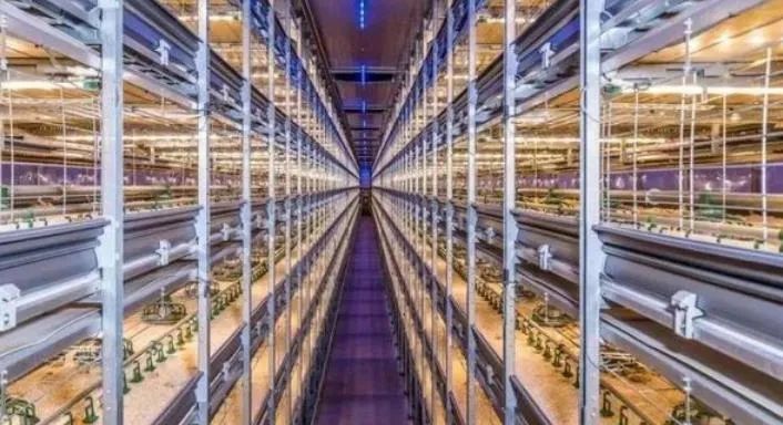 一個雞場能同時飼養15萬只雞,幾乎完全是自動化飼養。