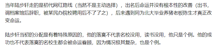 有人認為陸步軒只是個例,他的落寞和成功都不具有代表性;