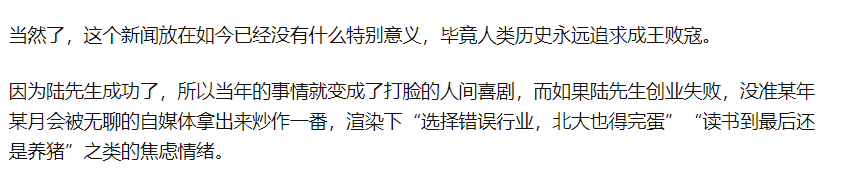 有人認為北大畢業(yè)的陸步軒去養(yǎng)豬是降維打擊,行業(yè)的界限越來越模糊;