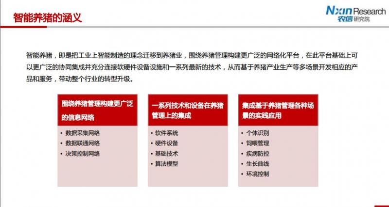 這份ppt報告來自北京農(nóng)信互聯(lián)研究院院長于瑩主題分享《智能養(yǎng)豬專題研究報告》,36頁干貨PPT對互聯(lián)網(wǎng)巨頭為何要養(yǎng)豬、工廠化養(yǎng)豬、智能養(yǎng)豬、Ai技術(shù)養(yǎng)豬、智能養(yǎng)豬圖譜進行深度剖析。