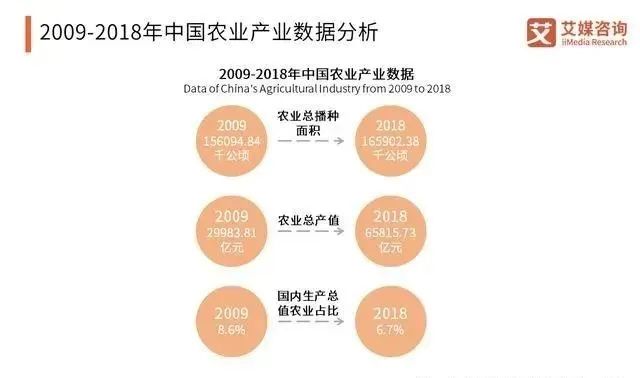 艾媒咨詢分析師研究發(fā)現(xiàn),中國近幾年不斷優(yōu)化調(diào)整產(chǎn)業(yè)結(jié)構(gòu),因此GDP中二三產(chǎn)業(yè)比重不斷增加,農(nóng)業(yè)占比不斷下滑,在2018年降至6.7%,這是進(jìn)一步推動農(nóng)業(yè)現(xiàn)代化發(fā)展的基礎(chǔ)和動力。