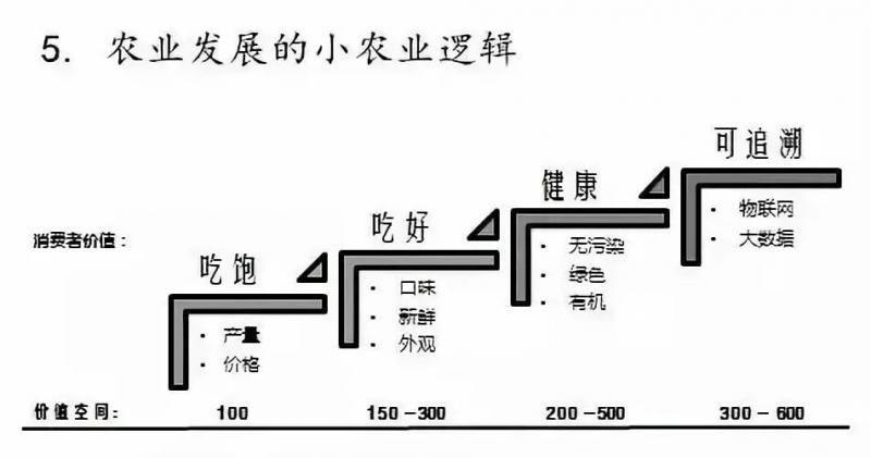 第五個是“小農(nóng)業(yè)”的邏輯,是從特色導(dǎo)向轉(zhuǎn)變?yōu)閮r值導(dǎo)向。