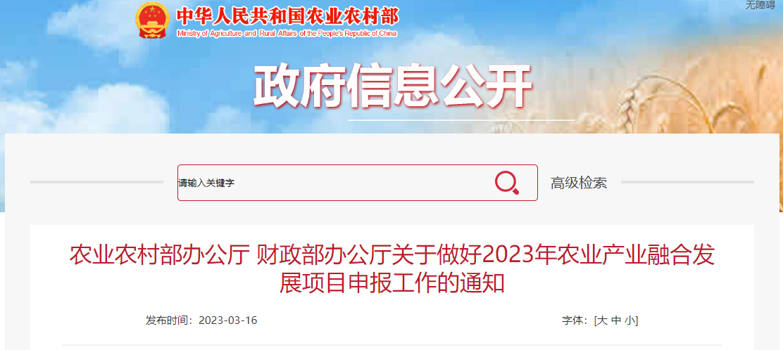 貫徹落實黨中央、國務(wù)院關(guān)于推進農(nóng)村產(chǎn)業(yè)融合發(fā)展的決策部署,為更好發(fā)揮中央財政資金使用效益,引導(dǎo)和撬動更多資源要素向鄉(xiāng)村匯聚,探索產(chǎn)業(yè)集聚發(fā)展模式,整體提升農(nóng)業(yè)產(chǎn)業(yè)鏈供應(yīng)鏈現(xiàn)代化水平,農(nóng)業(yè)農(nóng)村部、財政部2023年繼續(xù)統(tǒng)籌推進農(nóng)業(yè)產(chǎn)業(yè)融合發(fā)展工作。現(xiàn)將有關(guān)事宜通知如下。