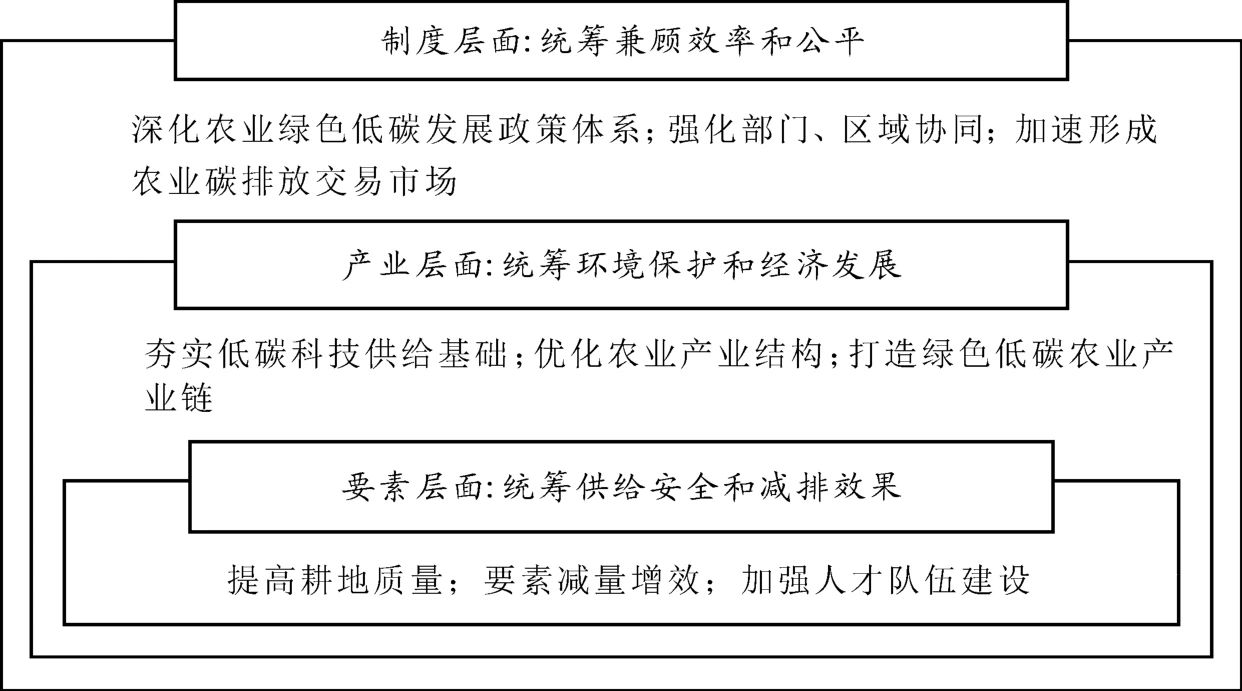 圖2 要素、產(chǎn)業(yè)、制度層面下的農(nóng)業(yè)綠色低碳發(fā)展舉措