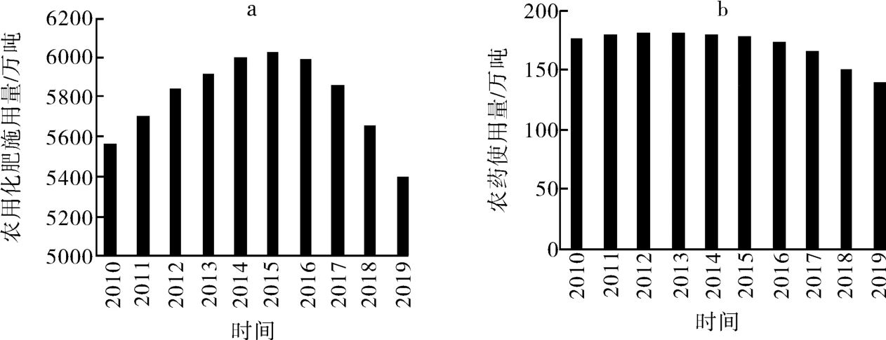 圖1 2010-2019年我國(guó)化肥(a)、農(nóng)藥(b)投入變動(dòng)情況