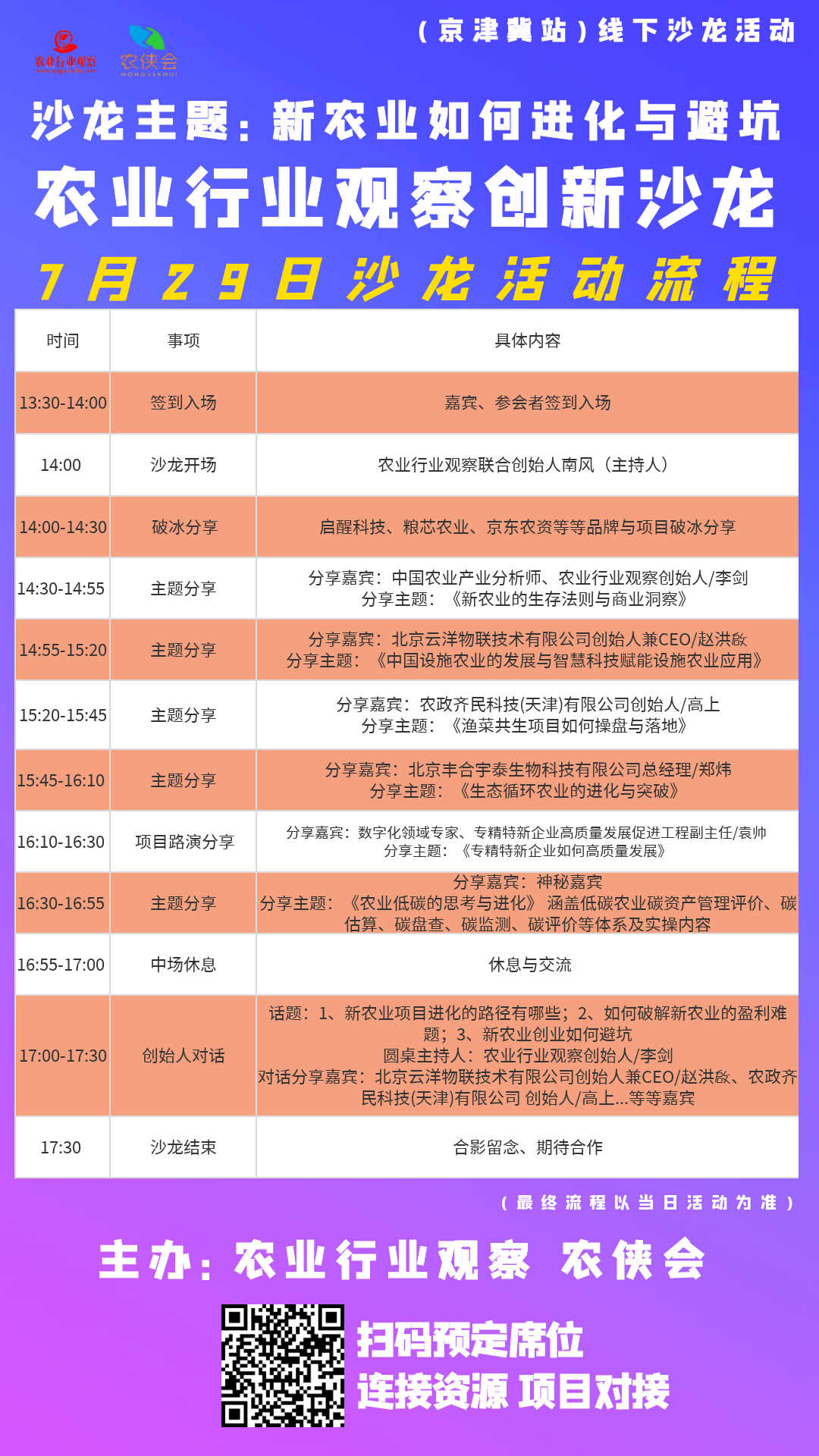 以“新農(nóng)業(yè)如何進(jìn)化與避坑”為主題,農(nóng)業(yè)行業(yè)觀察創(chuàng)新沙龍(京津冀)第二期線下活動(dòng)將于2023年7月29日開(kāi)啟,邀請(qǐng)來(lái)自京津冀地區(qū)的設(shè)施農(nóng)業(yè)操盤手、漁菜共生操盤手、生態(tài)循環(huán)農(nóng)業(yè)操盤手、低碳農(nóng)業(yè)操盤手、商業(yè)構(gòu)架師、投資人等創(chuàng)始人、標(biāo)桿企業(yè)負(fù)責(zé)人一起探討交流、對(duì)接合作。