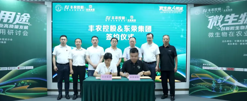 活動中,豐農控股集團與深圳東榮集團正式簽署了戰略合作協議,旨在整合雙方資源,深化農業微生物技術合作,推動農業綠色轉型。合作涵蓋技術培訓、產品定制、產業園入駐、產品示范及戰略伙伴關系深化等,將通過線上線下培訓、定制化微生物產品開發、資源優化配置及商業評估,共同構建農業微生物產業新生態,推動農業技術創新與應用,加速農業高質量發展,為鄉村振興貢獻更大力量。