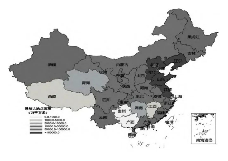 高標準設施農業強調的是高標準,通過運用農業科技創新技術,加強農作物防災減災能力,同時提高糧食產量。然而,相較于荷蘭、以色列、日本等設施農業發達的國家,中國設施農業建設在集約化生產、智能化的生產管理和標準化的病蟲害防治方面還有一定差距。根據2016年的設施農業面積調研數據顯示,貴州、江西及廣西等相對落后的省份在設施農業建設方面仍有較大的發展空間,雖然這些省份的年輕人大多外出務工,但仍有相當多的農村勞動力無法完全脫離農業。西藏、青海等地區因地形、土壤、氣候等因素,設施農業建設難以開展。這表明設施農業建設的水平正在成為中國地域差距的一個新體現,并且這種差距還在不斷擴大。這種差距的原因主要是地形地貌等因素以及智能化與機械化水平的不足。例如,青海半干旱地區以及湖南、貴州等山區由于地形原因,大型機械設備難以進入。雖然湖南省近年來一直大力發展智慧農業與數字農業,但設施農業建設是一項高度集約化、高投入的產業,如何吸引資源、技術人才等向設施農業聚集需要進一步思考。根據農業部農業機械化管理司的統計數據,2016年全國(不含港澳臺)設施農業總面積(連棟溫室、日光溫室、塑料棚)為2082.88千公頃,具體各省(市、自治區)的設施面積分布情況如圖所示。