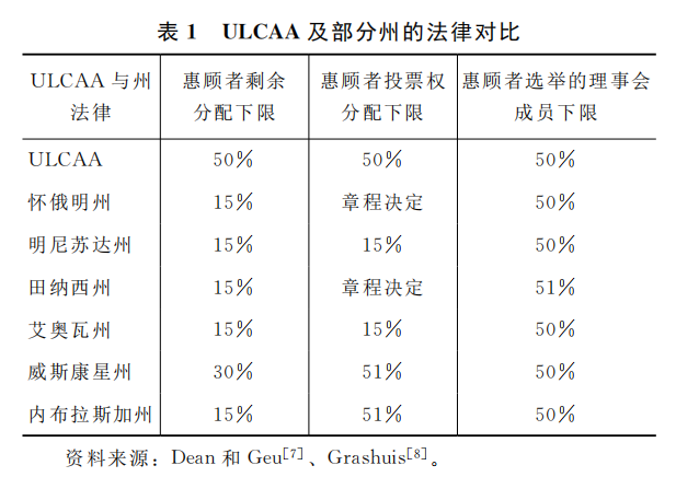 明尼蘇達州(2003年)、艾奧瓦州(2005年)、田納西州(2005年)、威斯康星州(2006年)、內布拉斯加州(2007年)先后通過了類似WCM的法案。美國統一州法全國委員會(TheNationalConferenceofCommissionersonUniformStateLaws,NCCUSL),附屬于美國律師協會,成員為法律界人士,主要任務是起草并向各州推薦統一的法規,推動各州采納,使得各州法律趨于一致。該委員會成員由各州州長選派,每年舉行一次年會,在2007年年會上通過了《統一有限合作社法案》(UniformLimitedCooperativeAssociationAct,ULCAA),將WCM取名為有限合作社(LimitedCooperativeAssociation,LCA),向各個州推薦有限合作社①。猶他州(2008年)、俄克拉何馬州(2009年)、哥倫比亞特區(2010年)、密蘇里州(2011年)、科羅拉多州(2012年)、肯塔基州(2012年)、佛蒙特州(2012年)先后通過了以UL-CAA為版本的法案。共有13個州或特區通過了有限合作社相關法案。各個州采用了加工合作社(ProcessingCooperative)、合作社協會(CooperativeAssociation)、有限合作社(LimitedCooperativeAssociation)等名稱,可以統稱為美國有限合作社。