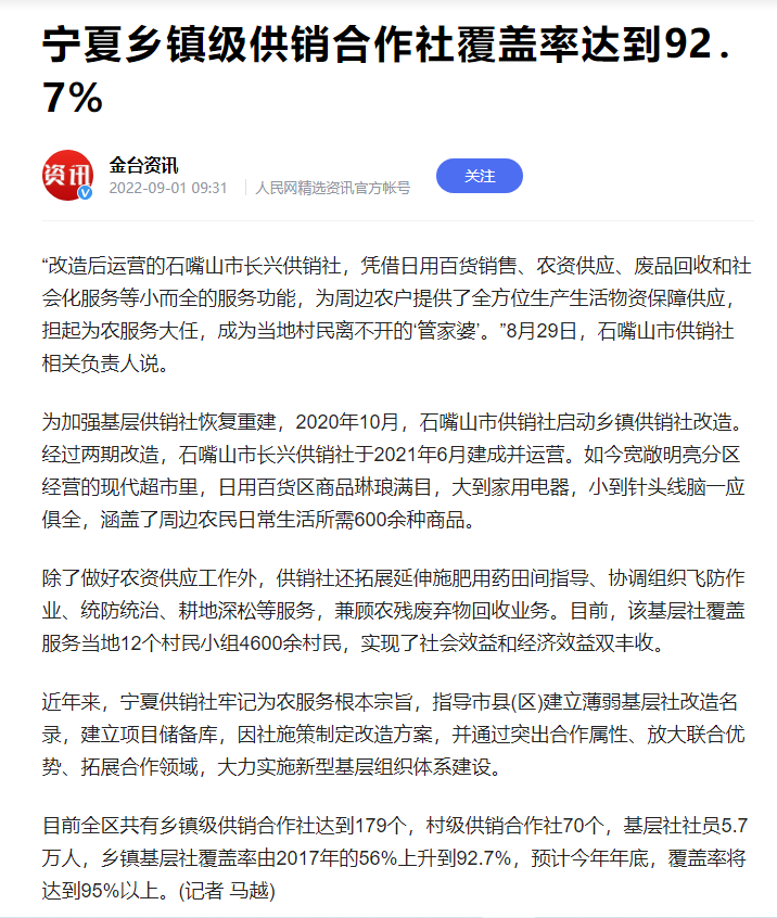 如果你在網上搜索一下,就會發現:近年來,各地都在恢復供銷合作社的建制。比如寧夏: