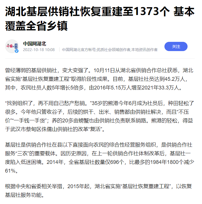 最近幾天,湖北日報一則“恢復重建供銷社”的報道,引起了不少人的關注。