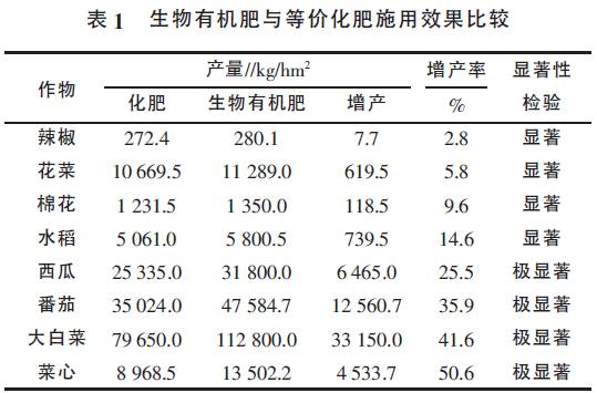 目前,生物有機肥在一些生態(tài)示范區(qū)、綠色和有機農(nóng)產(chǎn)品基地應用取得了較好的效果, 這對生物有機肥今后的推廣應用起到良好的示范作用。