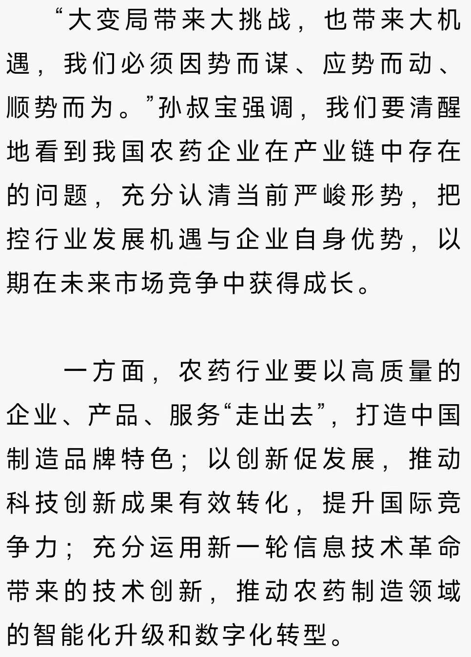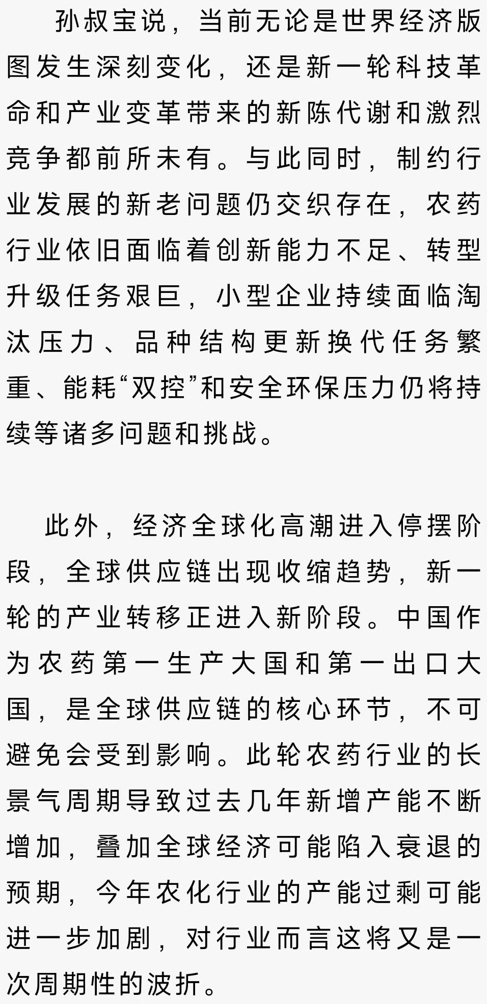 2022年,我國農藥行業總體保持平穩發展態勢,千億規模投資助力農藥產業鏈有序延伸,農藥企業產值規模和經濟效益整體繼續提升。2023年,農藥行業產能過剩或進一步加劇,農藥企業要充分認清當前嚴峻形勢,正視挑戰,把控行業發展機遇與企業自身優勢,以期在未來市場競爭中獲得成長。中國農藥工業協會會長孫叔寶在近日接受記者采訪時表示。