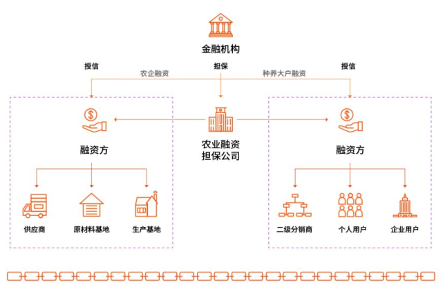 在完成數字身份以及數據確權布局之后,最終將依托區塊鏈建立信任網絡,讓已有的信任數據在金融體系中流轉,從而產生價值。將傳統農業融資擔保體系共同介入到區塊鏈中,信息流、賬務流、物流(供銷存運付)等統一于一個平臺中,有利于提高風控效率(貸前審核、貸后監控),從而降低信息不對稱風險,實現信息可追溯不可篡改問題,整體上降低體系內運轉成本,助力解決三農融資難問題。