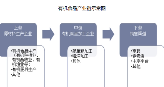 有機(jī)食品的產(chǎn)業(yè)鏈上游環(huán)節(jié)主題為有機(jī)食品原材料生產(chǎn)企業(yè),主要負(fù)責(zé)有機(jī)食品生產(chǎn)和有機(jī)肥料等投入品的生產(chǎn);中游環(huán)節(jié)主體為有機(jī)食品加工企業(yè),主要負(fù)責(zé)加工、儲(chǔ)存和運(yùn)輸;下游涉及銷售渠道,主要有商場、有機(jī)食品專賣店和電商平臺(tái)等,最終流向消費(fèi)者。