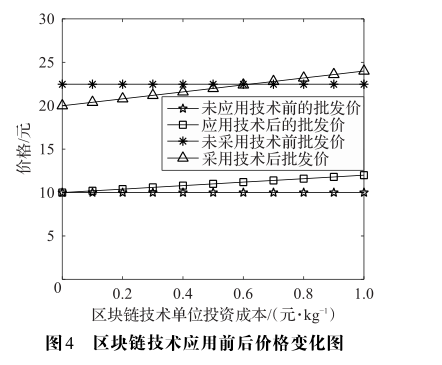由本章的分析可知,將區(qū)塊鏈技術(shù)應(yīng)用于生鮮供應(yīng)鏈,供應(yīng)鏈上各方的定價(jià)訂貨參數(shù)諸如批發(fā)價(jià)格、零售價(jià)格以及訂貨量均會(huì)發(fā)生改變,同時(shí)改變量也將受到區(qū)塊鏈技術(shù)應(yīng)用成本的影響。