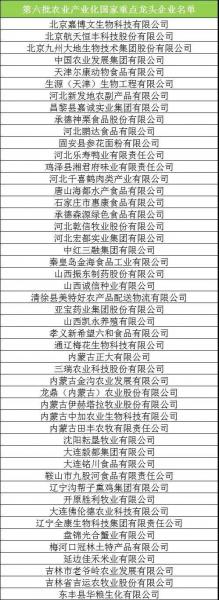 12月3日,農業農村部、國家發展改革委、財政部、商務部、中國人民銀行、國家稅務總局、中國證券監督管理委員會、中華全國供銷合作總社聯合印發通知,公布第六批 299 家農業產業化國家重點龍頭企業名單。