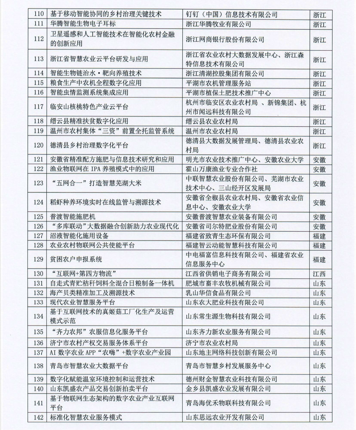 以下為205個數字農業農村新技術新產品新模式優秀案例名單