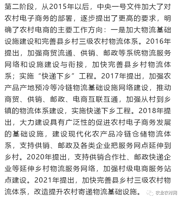 2021年10月,商務部、中央網信辦、發展改革委三部門聯合發布的《“十四五”電子商務發展規劃》明確指出,實施“數商興農”行動。包括:引導電子商務企業發展農村電商新基建,提升農產品物流配送、分揀加工等電子商務基礎設施數字化、網絡化、智能化水平,發展智慧供應鏈,打通農產品上行“最初一公里”和工業品下行“最后一公里”;培育農產品網絡品牌,加強可電商化農產品開展“三品一標”認證和推廣,深入開展農產品網絡品牌創建,大力提升農產品電商化水平。