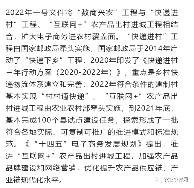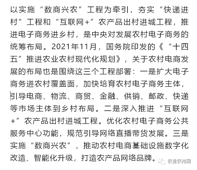 實施“數商興農”工程,是2022年中央一號文件中農村電商的最大亮點。