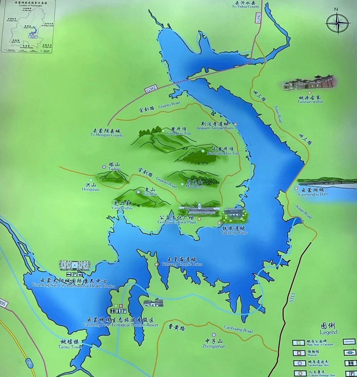 云蒙湖,位于山東省臨沂市蒙陰縣,由沂河支流東汶河與梓河交匯而成,是山東省第二大水庫、臨沂城區(qū)飲用水源地,總庫容8億立方米,流域面積1690平方公里,被譽為“沂蒙水塔”。