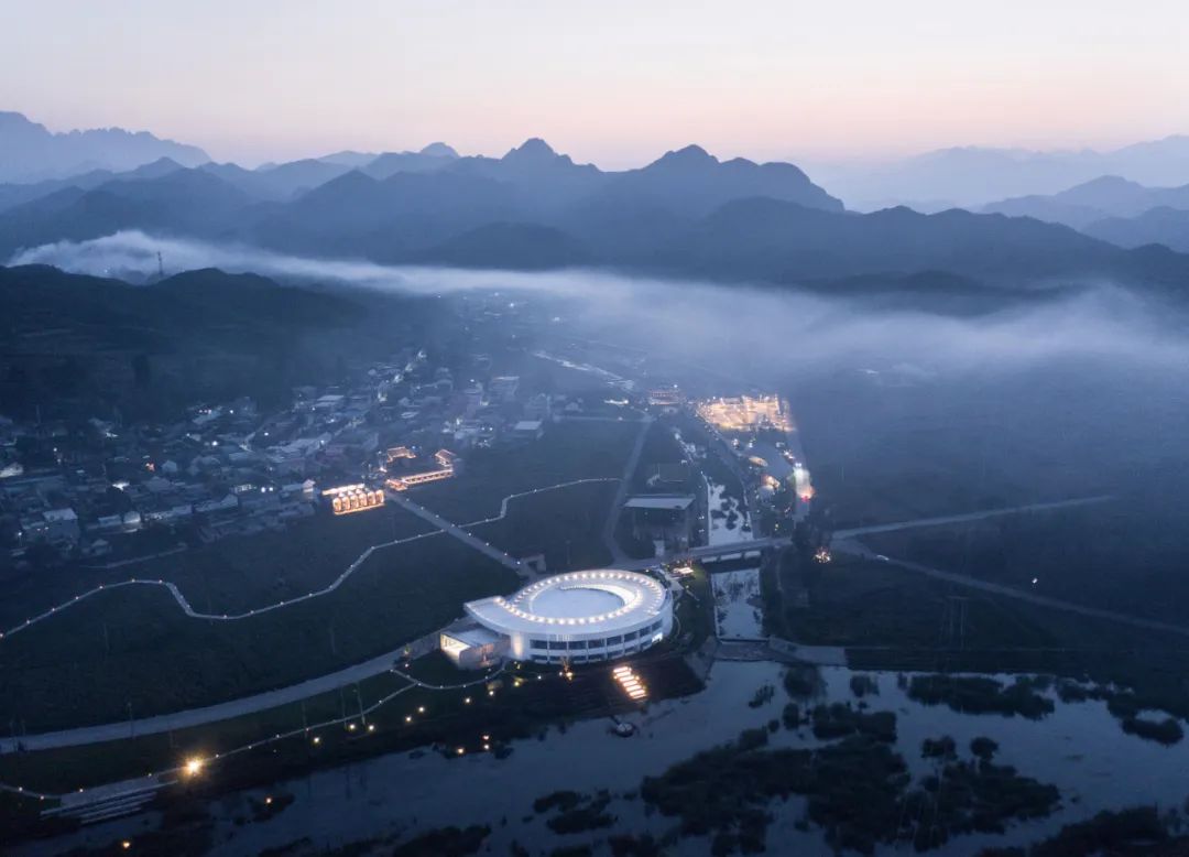 142 平方公里的山水成為一個(gè)“建筑試驗(yàn)場(chǎng)”,與此同時(shí),藝術(shù)于鄉(xiāng)野間播種、扎根、生長(zhǎng),田崗村成為這篇廣袤底圖上的一顆璀璨星辰。
