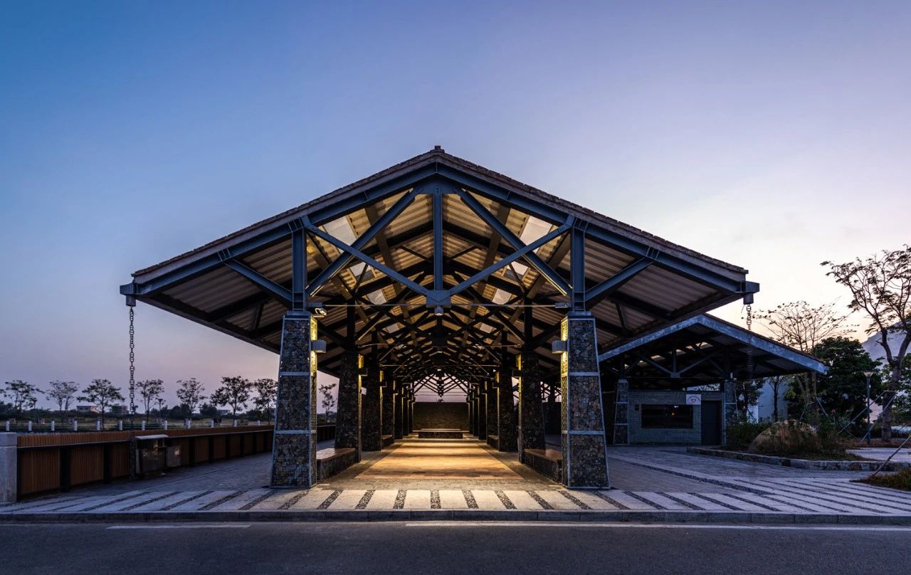 項(xiàng)目包含了黃厝寮村的兩個(gè)重要公共空間節(jié)點(diǎn):位于村頭的村民中心以及位于村尾的濕地中心。村民中心建設(shè)了一個(gè)758㎡的開(kāi)敞架構(gòu),以設(shè)置黃厝寮村村民停車(chē)場(chǎng)、衛(wèi)生間、小賣(mài)部、村民休憩空間、農(nóng)科輔導(dǎo)用房等需求。濕地中心面積400㎡,設(shè)置衛(wèi)生間、小賣(mài)部供游客村民使用,并修繕了村民用以祭祀、集會(huì)的祭祀廣場(chǎng),在農(nóng)忙時(shí)也作為曬谷、休憩的場(chǎng)所使用。